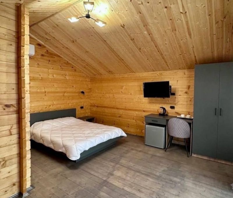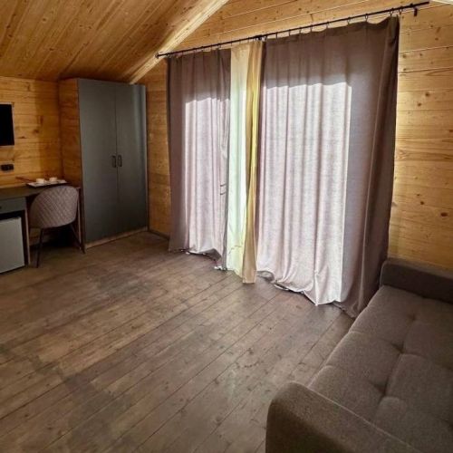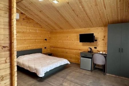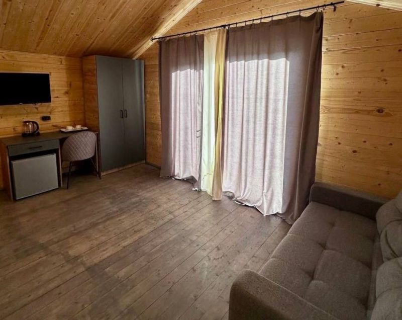 В номерах коттеджей есть все для комфортного проживания: кондиционер, телевизор с плоским экраном, холодильник, сейф, чайник, а также 2-спальная кровать, письменный стол, стул, диван-кровать, собственная ванная комната, постельное белье, фен, полотенца, и терраса с видом на море.